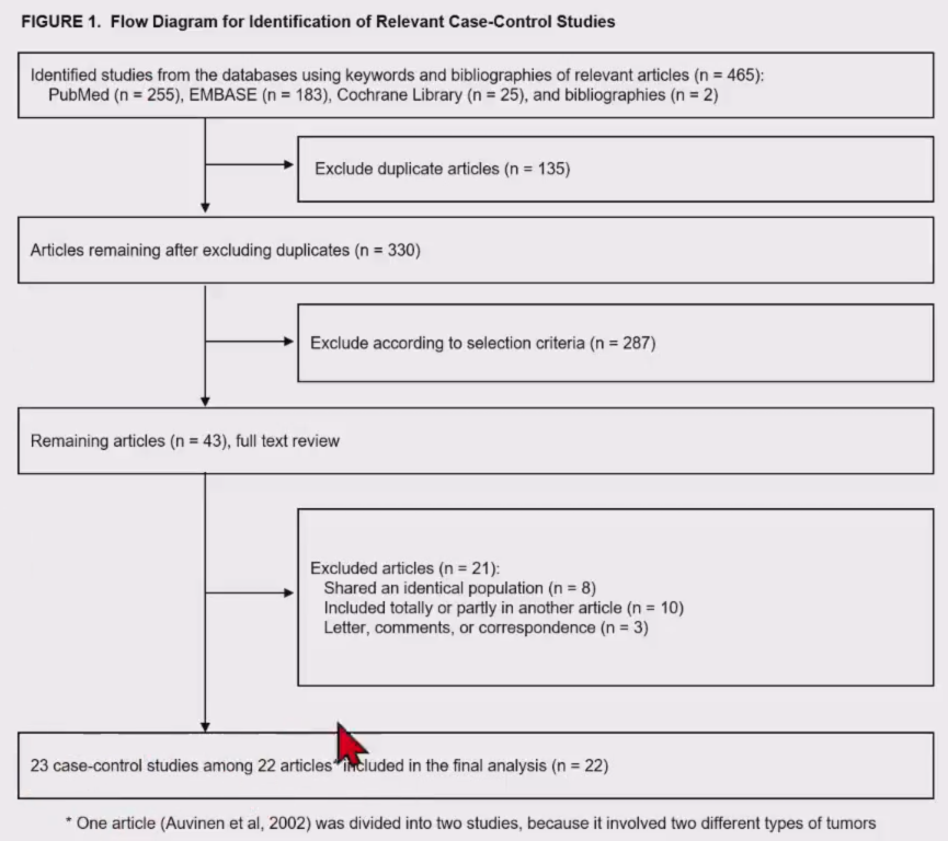 주제 설정 : 논란이 있거나 결론이 나지 않은 주제로, 최소 10편의 연구를 선정하며, case-control, cohort, RCT를 모은다.