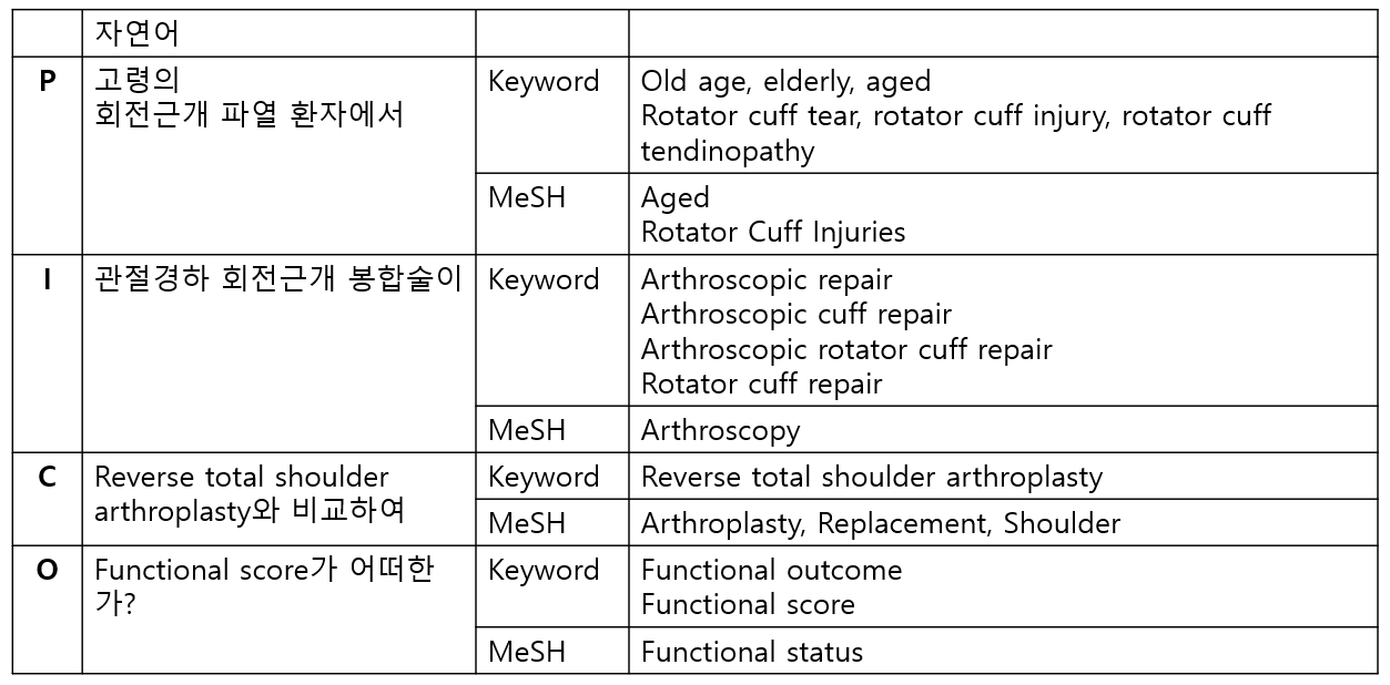 이후 PICO의 주요 개념어들을 적절히 조합하는 과정이 필요하다.