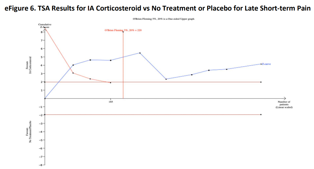 1형 오류의 문제 : p < 0.05로 유의미한 결과를 도출한 연구는 1형 오류를 줄이기 위해 TSA(Trial sequential analysis)를 거쳤다. TSA는 마치 메타분석의 interim test와 유사하다.